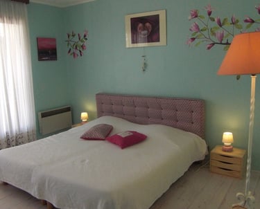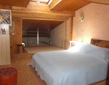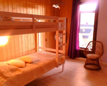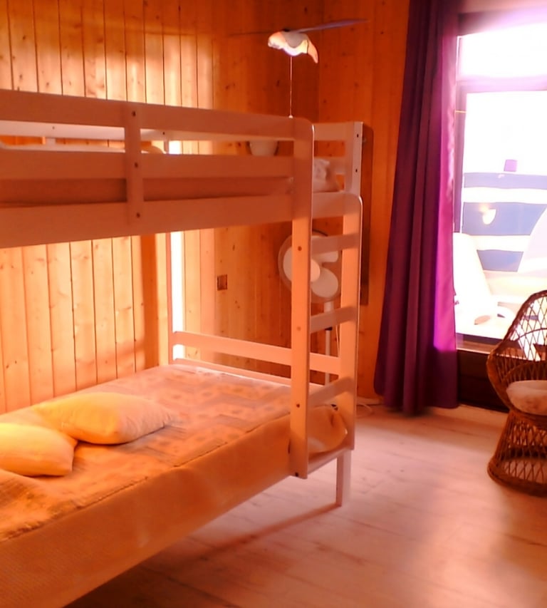 3 espaces nuits avec un lit double, deux lits simples et deux lits superposés